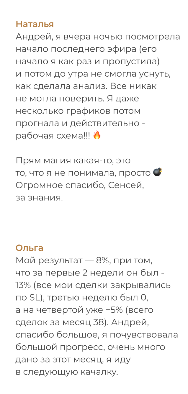 Обзоры торговых сделок дают тебе дополнительную возможность познакомиться с рынками. Узнай, как заранее предвидеть прибыльные сетапы, открывать позиции с высокой точностью и управлять ими для получения максимальной прибыли.