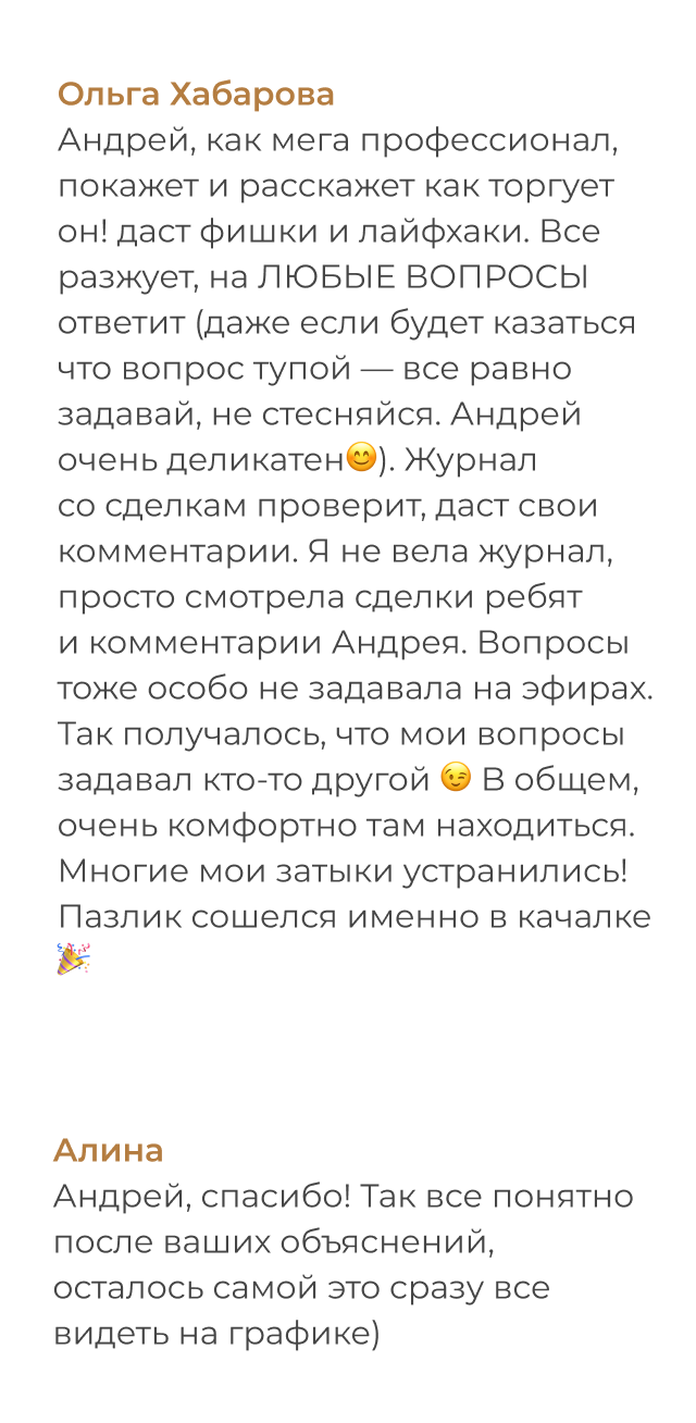 Задавай вопросы наставникам, мы поможем тебе на протяжении всего твоего торгового пути